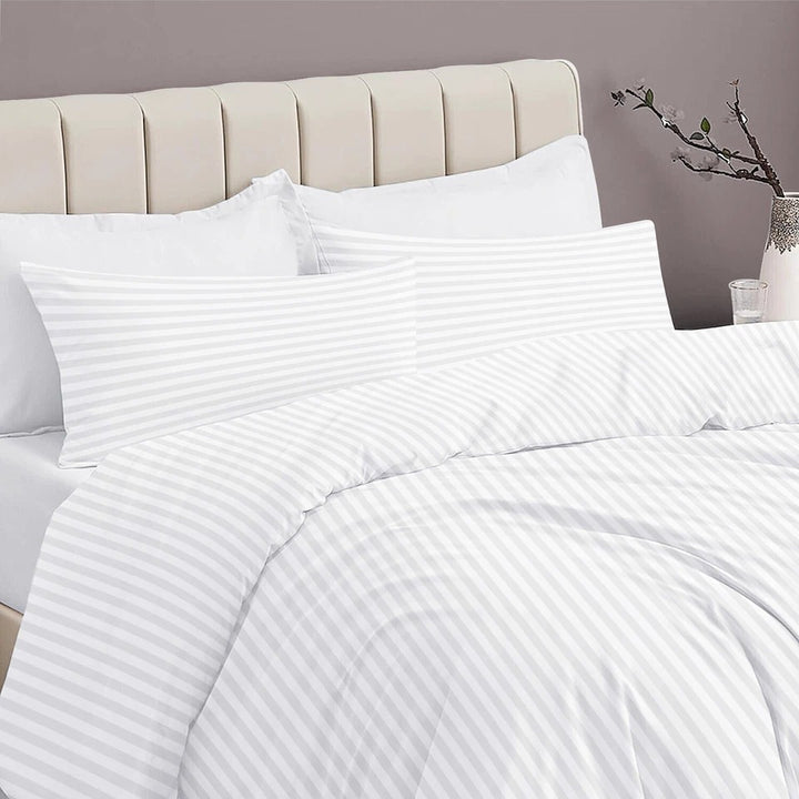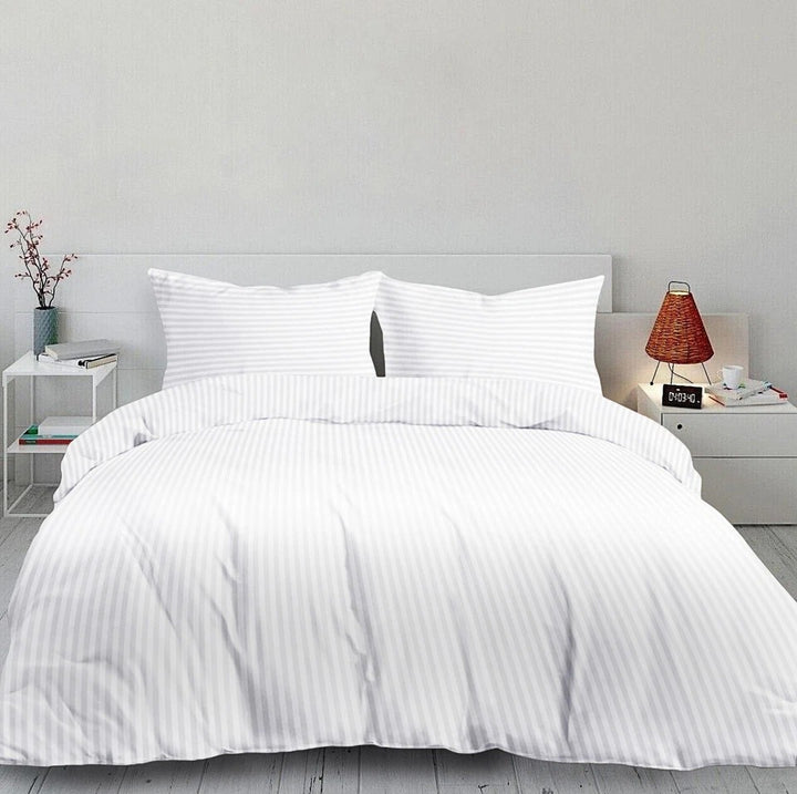 White Thin Stripe- Hotel Stripe Duvet Cover Set