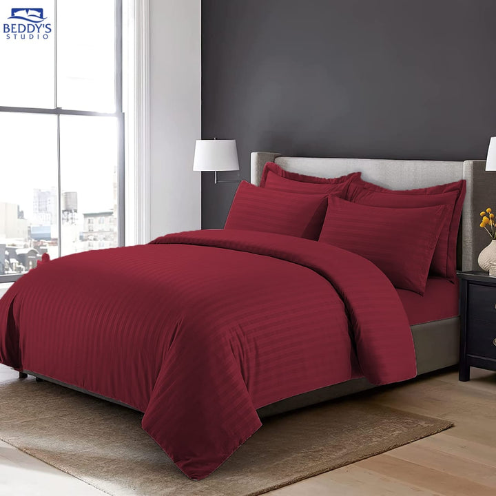 Maroon- Hotel Stripe Duvet Cover Set